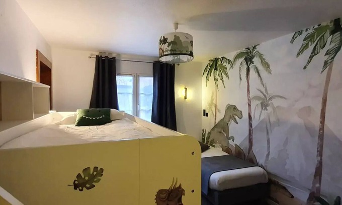 Accommodation: Dive into the fascinating universe of dinosaurs with our family suite Dino, ideal for families with teenagers or for those looking for a little more space and comfort. This spacious suite, both practical and playful, allows to separate the parents and children's area while offering each one a corner of tranquility.