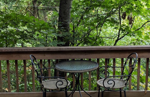 The kitchen is complete with a full size refrigerator, convection/toaster oven, microwave oven, electric skillet, hot plate with ceramic saucepan, regular drip and Keurig coffee makers. Cable TV is available in both the living room with DVD player and the bedroom. You have your own private deck that runs the length of the house. You may take the table and chairs outside on the deck for al fresco dining. There is a heated mattress pad on the king size bed for frosty nights! We use all organic and non-toxic cleaning products.