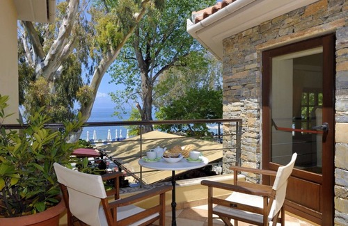 Location: The hotel with its studios and flats is located 18 km south of Volos in Kala Nera directly on the beach. Only the local road (5 m) separates the hotel from the sandy beach.