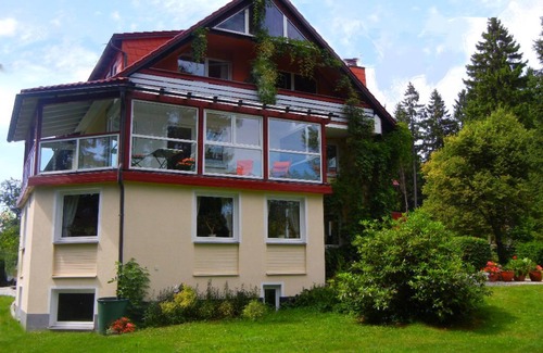 Unsere Suite befindet sich im Fichtelgebirge - eine gute Ausgangslage direkt an der Ochsenkopfseilbahn für Wanderer, Downhillfahrer und Mountainbiker. Genießen Sie die Natur und übernachten Sie in unser 100qm Suite. Die Wohnung für bis zu 4 Personen umfasst einen Wohnraum, zwei Schlafzimmer (jeweils mit Doppelbett, ein SZ mit TV), sowie ein Badezimmer. Das Badezimmer ist mit einer Dusche und WC ausgestattet (+ Fön). Die Wohnung ist allergikergeeignet. Neben der Küchenzeile die unteranderem mit einem Kühlschrank, einem Toaster, einer Mikrowelle und einer Kaffeemaschine ausgestattet ist, finden Sie noch einen gemütlichen Essplatz. Nicht zu vergessen ist der gemütliche Wintergarten und der überdachte Balkon, der Brötchenservice und das WLAN das Ihnen in unserer 1-Raumferienwohnung zur Verfügung steht. In geh-Nähe können Sie vom Mai bis Oktober am Frühstückbuffet teilnehmen. Große Liege- und Spielwiese, Kinderspielplatz, Grill, Tischtennis, Fahrradraum stehen Ihnen zu Benutzung frei.