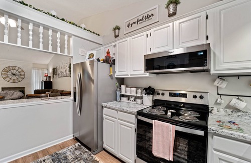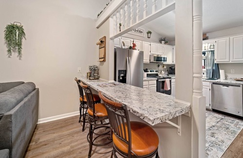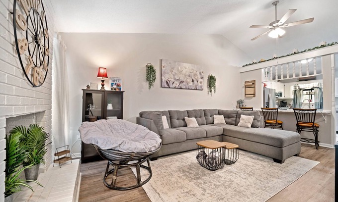 Kick back and relax in this calm, stylish space. The sectional couch is waiting for you after a long day to relax and enjoy the 65" smart TV. Prepare some delicious food in the fully furnished kitchen that has everything from stainless steel appliances to a Keurig, an air fryer and more! The master suite is private and perfect to regenerate for the next days adventures or catch up on some work with the workspace and WiFi printer in the guest bedroom. The guest bedroom has a bunk bed with a twin bed on the bottom and twin bed on top that the kids just love. There is even a fenced in, private back yard to unwind with some friends. Just bring your clothes and some groceries, then relax and enjoy your stay!
