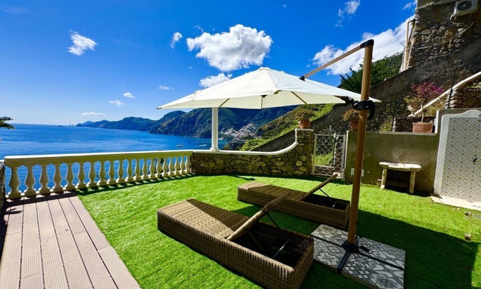 Perched in a privileged position halfway between Positano and Praiano, this exclusive one-bedroom apartment offers an extraordinary panoramic view over the sparkling Mediterranean Sea and the iconic cliffside village of Positano. Nestled in lush, fragrant gardens and easily accessible by local bus services (Flavio Gioia or SITA Sud), this hidden gem in Laurito promises a serene and stylish escape with easy reach to both towns. Key Features: Private Reserved Parking – A rare and valuable feature on the Amalfi Coast. Expansive Outdoor Living Space – Enjoy the generous terrace equipped with sun loungers, a large parasol, and a handcrafted ceramic dining table—perfect for al fresco meals with a view. Direct Access to the Sea – Guests enjoy exclusive access to the rocky shoreline just below the villa. While incredibly scenic, the shore is stony and the sea deep—recommended only for confident swimmers. Elegant Bedroom – A refined and spacious bedroom with a luxurious king-size bed and tasteful décor. Modern Bathroom – Featuring a large walk-in shower, bidet, toilet, and designer washbasin, offering spa-like comfort. Separate Laundry Room – Equipped with both a washer and dryer, an uncommon and very convenient feature for the region. Fully Equipped Gourmet Kitchen – Includes: 5-burner gas stove Traditional oven Microwave Toaster Blender American-style coffee maker Three-temperature wine cooler Extra-large fridge and freezer Stylish Living Room – Relax on a comfortable sofa with a Smart TV (though with that incredible view, you might not use it much). Location & Access: