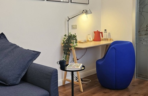 Our 45 sq meters space features a master bedroom with en-suite bathroom, a fully equipped kitchen, and a spacious living area.
