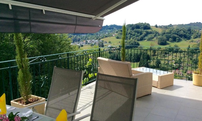 Suite panoramique à Tulle is located in Tulle, just 13 miles from Aubazine Golf Course and 19 miles from Brive Town Hall. This property offers access to a balcony, free private parking, and free Wifi. Outdoor seating is also available at the guest house. Offering a terrace and mountain views, the spacious guest house includes 1 bedroom, a living room, satellite flat-screen TV, an equipped kitchen, and 1 bathroom with a walk-in shower. Towels and bed linen are offered in the guest house. For added privacy, the accommodation has a private entrance and soundproofing. There is an on-site coffee shop. Guests at Suite panoramique à Tulle will be able to enjoy activities in and around Tulle, like walking tours. Brive Media Centre is 19 miles from the accommodation, while Brive Exhibition Centre is 19 miles from the property. Brive Dordogne Valley Airport is 34 miles away.