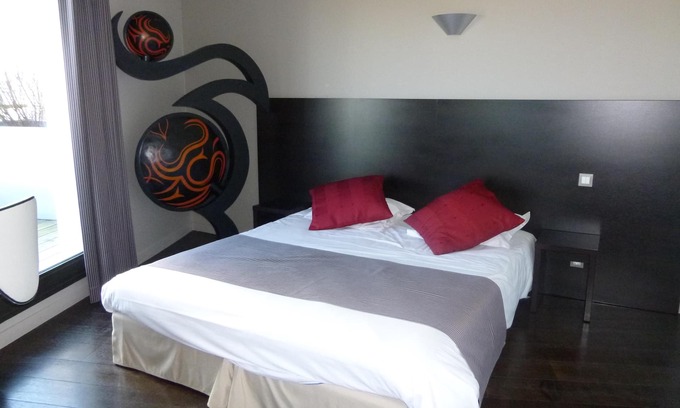 Designed for 1 to 3 people accessible by lift, with an area of 30 M² air-conditioned, comfortable and bright with its balcony overlooking nature. Equipped with a large 180 x 200 cm bed, flat screen TV and free WIFI, small bottle of water for your reception and its lounge with mini-bar and Nespresso machine. Double bathroom with bath and walk-in balneo shower, RSPO certified welcome products; hair dryer and separate WC. For your vehicle, free parking is available. Buffet breakfast from 07:00 to 10:00 at €12.50 per person, possibility of early breakfast on request. The bar welcomes you every day from 7 a.m. to 10.30 p.m. for a drink and the restaurant from 12 p.m. to 1.30 p.m. and 7 p.m. to 8.30 p.m. for your meals. For any further information, our reception welcomes you from 7 a.m. to 10:30 p.m do not hesitate to contact us at: 02 48 54 30 30