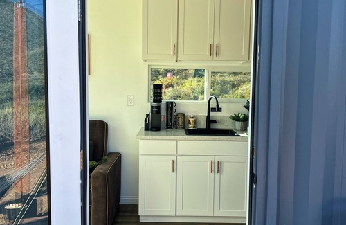Discover an idyllic retreat in the heart of Lovell Canyon, Nevada, where a studio container offers a unique blend of rugged outdoor adventure and modern comfort. Surrounded by awe-inspiring mountain ranges and an extensive network of hiking trails, this studio container is a haven for nature lovers and camping enthusiasts. The cozy interior features a pull-out couch, a well-equipped kitchen, and a convenient walking shower, providing the perfect balance between rustic charm and modern amenities. This off-grid property is situated approximately 1 hour and 15 minutes from the Las Vegas airport. Please follow the host's directions as there is no GPS location available. We advise using a 4x4 vehicle for your journey up and departing while there is still daylight. BE AWARE bookings in WINTER months Dec/Jan/Feb/March water for sink and shower is not provided as Pipes get closed to avoid freezing and bursting. We do provide a 5gallon water jug for use.