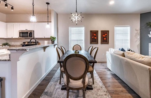Enjoy a memorable stay in Lubbock at the Suite Starry Night! This 3 bed/3 bath/3 car garage home has it all. It comes outfitted with five smart Samsung 4K TVs throughout the house to meet all your streaming needs. The internet is fast - 1GIG fiber fast - with a Wi-Fi-mesh system providing thorough coverage to reach every corner of the property. Protect your vehicle and belongings from the elements during your stay by parking in the spacious 3 car garage.