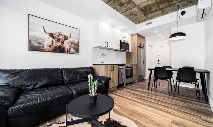 Come and enjoy an unforgettable stay in the heart of the Saint-Roch district in Quebec City. This modern and luxurious condo will charm you with its common areas and its interior design.
