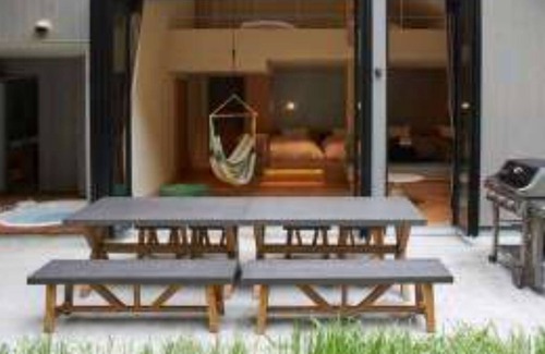 Relieve your daily fatigue in the spacious outdoor bath or relax in the indoor hammock without worrying about time