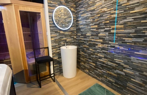 Suite with jacuzzi and sauna is located in Steenvoorde. Suite with jacuzzi and sauna provides accommodation, featuring TV, Spa, Fireplace/Heating, among other amenities. This House features TV, Spa, Fireplace/Heating, to make your stay a comfortable one.