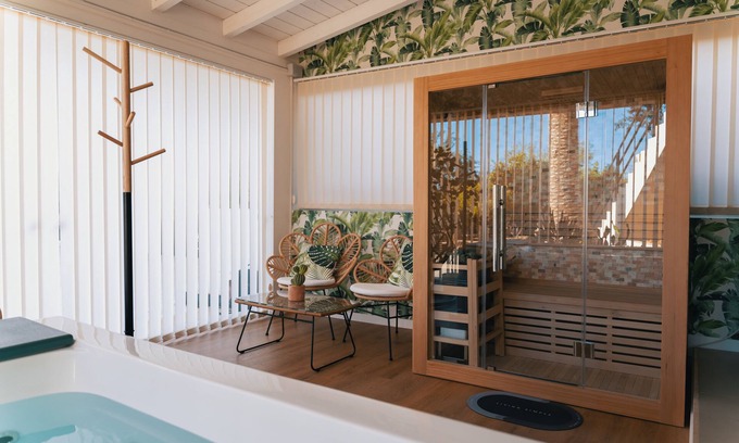 After you return to this 323-sq-ft villa, you can unwind by the private pool or sip a drink in the hot tub; you may also like the garden and terrace. As for the great indoors, you can come inside and enjoy the free WiFi and cable/satellite TV.