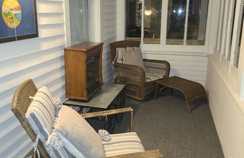 This suite is attached to an Victorian house that was built in the 1900's. It has a beautiful covered front porch that is so inviting you will loose track of time just sitting and enjoying the change in the seasons or the neighborhood wildlife. On the first floor this suite features 1 queen bed with a full bathroom with shower only. It comes complete with a microwave and refrigerator. Also in the room is a coffee pot with a nice selection of regular and decaf coffee. On the second floor their are 2 more bedrooms each with a double bed. 2 Flat screen televisions, one on each floor with premium channels and complimentary wifi is provided.