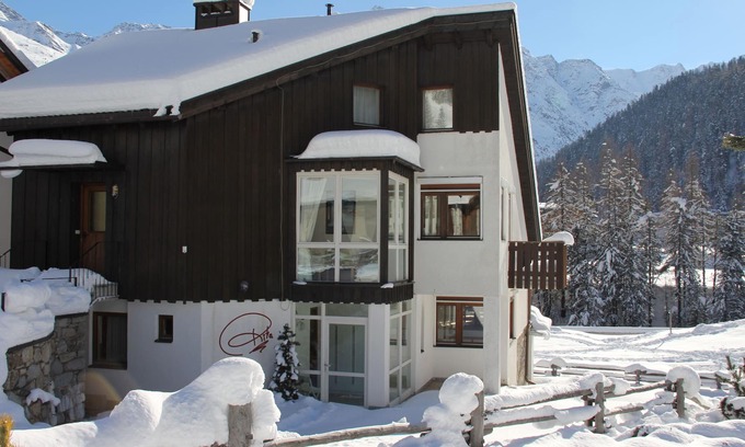 Holiday flat Ferienhaus Chalet Haus Rita in a quiet sunny location with 4 holiday apartments in the center of Solda - South Tyrol, adjacent to the farm with kl. Restaurant "Yak & Yeti" and the mountain museum of Reinhold Messner. South terrace with stunning views of Sulden's mountains and the Ortler. Here you can enjoy the comforts of a nice apartment in a small chalet where you can relax.
