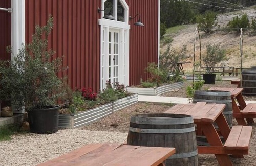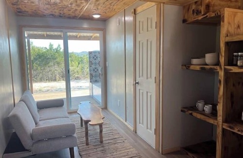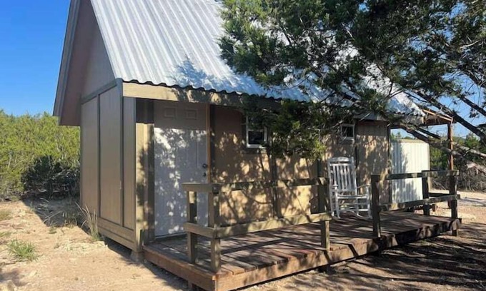 Take it easy at this unique and tranquil getaway. Get away from it all when you stay under the stars at Sovereignty Ranch on a working regenerative farm. This house has a patio, a bathroom with a toilet & shower, an outdoor bathtub/shower, a kitchenette, and a loft with two queen sized beds. Enjoy the rest of the amenities of the ranch, like swimming in the pond, or taking a sauna or the playground. Enjoy being in the hustle and bustle of our family farm in beautiful Texas Hill Country.