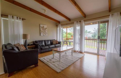 Summer Beach House - seconds to beach & cafe is located in Kioloa, just a 2-minute walk from Merry Beach and 22 miles from Mollymook Golf Club. The vacation home is 28 miles from Batemans Bay Marina. Summer Beach House - seconds to beach & cafe features 3 bedrooms, a fully equipped kitchen with an oven and a microwave, a washing machine, and 2 bathrooms. Guests can take in the views of the mountain from the patio, which also has outdoor furniture. The accommodation is non-smoking. Guests can also relax in the garden. Moruya Airport is 43 miles away.