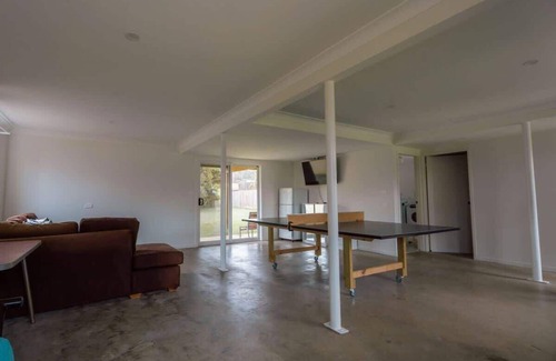 Pet-friendly Kioloa beach house near sand & surf. Table tennis, front & rear decks, fully fenced yard. Seconds to restaurant; local shops. Unfortunately Linen and wifi not provided
