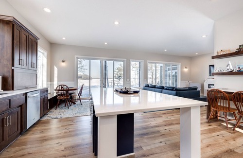 Enjoy sipping coffee or a cocktail while enjoying 130 feet of the Big Sandy shoreline. Area fishermen call this lake a great sport fishery. Boasting with 20 species of fish, so there is something for every angler! Being over 6,520acres and 59 miles of shoreline makes it an amazing reactional lake. You can travel by boat to thee many restaurants on the lake. Many of them have live music in the summer. Our dock has plenty of room for your boat. Or just relax on your own beach with plenty of outdoor seating, firepit and a hammock! In the winter enjoy ice fishing, snowmobiling or just snuggling up in a warm house with a view!