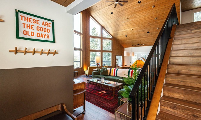 Welcome to Cle Elum Cabin — a retro 70s/80s summer camp dream with a glam twist! Soak in the hot tub, play shuffleboard, or relax in two fun, stylish living rooms. Uniquely designed rooms, Sonos speakers, indoor fireplace, outdoor fire pits, and a deck with stunning mountain views make this the ultimate grown-up camp getaway.