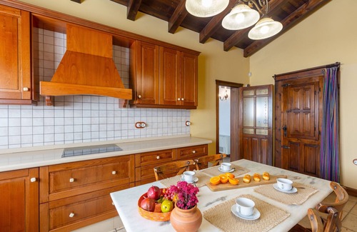 Beautiful villa with a private pool, consisting of 4 buildings within the same plot, located in Catral. It features 7 bedrooms, 5 full bathrooms, and 2 half bathrooms, accommodating up to 18 people.Building 1: Main house with 4 bedrooms, 2 of them with en-suite bathrooms, one additional bathroom, a guest toilet, a living room, a dining room, a kitchen, and a laundry room.Building 2: Located next to the spectacular pool, it has two guest rooms, one of them with an en-suite bathroom.Building 3: White Building, with the ground floor used as a garage, and the upper floor consisting of a children's bedroom that can accommodate 6 guests, a living room with a television, an independent kitchen, and a separate toilet.Building 4: Large barbecue area next to the pool, equipped with a dining table for 18 people and a full bathroom.The accommodation spans 500 m², tastefully furnished and fully equipped, situated on a 5000 m² plot with views of the garden and pool.Located in a rural setting close to all amenities, with restaurants and cafes just 2 km away.It has a garden, garden furniture, fenced plot, 200 m² terrace, barbecue, fireplace, internet access (wifi), hairdryer, balcony, children's area, heat pump heating, air conditioning, private pool, covered parking in the same building with capacity for 5 cars and another 5 outside, 3 TVs, in the children's room, lounge and barbecue satellite TV (Languages: Spanish, English, German, Dutch, French, Russian, Swedish, Norwegian), radio.The independent kitchen, with a ceramic hob, is equipped with a fridge, microwave, oven, freezer, washing machine, dishwasher, dishes/cutlery, kitchen utensils, coffee maker, toaster, kettle, juicer and kitchenware, there is also a kitchen in the room area with living room and toilet for childrenIt is located 2 km from "Catral" city, 2 km from "Dolores" supermarket, 2 km from "Catral" bus station, 2 km from "El Cuartel (Dolores)" restaurant, 3 km from "Parque Natural del Hondo", 3 km from the lake "Parque Natural del Hondo", 6 km from the train station "San Isidro de Albatera", 9 km from the golf course "Campo de Golf la Marquesa", 20 km from the amusement park "Torrevieja", 20 km from the water park "Aquapark", 20 km from the river "Desembocadura del Rio Segura", 20 km from the sandy beach "Guardamar del Segura", 20 km from the rocky beach "Guardamar del Segura", 40 km from the airport "Alicante International Airport" and is located in an ideal area for families and rural.To facilitate your arrival, you will receive, a few days before arrival, a request for a security deposit online. This security deposit will not be debited from your bank account. This procedure is authorised by your booking platform