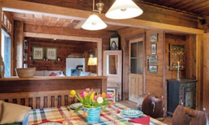 This historic, lovingly furnished and in 2023 renovated house has a stone foundation and is built entirely of wood. It can accommodate up to 8 people. On the ground floor is a kitchen (with oven, dishwasher, large fridge and a wood burning stove), a dining room, a living room, an open covered veranda, a close veranda, a WC (3 in total) and a laundry room with washing machine. The four bedrooms and a a spacious bathroom with bath, shower, and underfloor heating are on the upper floor. Three of the bedrooms have a sink, one bedroom has a bathtub and balcony.