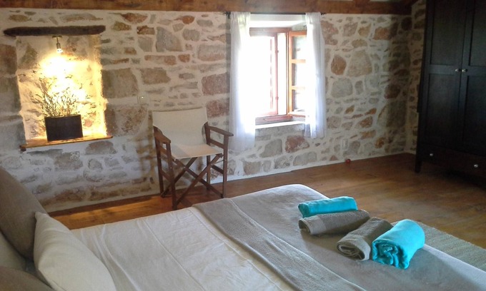 In the historic village of Pitve, close to the picturesque harbour of Jelsa, "The Architect's House" is a beautifully renovated 3-storey traditional village house. Stunning bedroom encompasses the entire top floor. Living areas on two floors, fully fitted kitchen, two bathrooms and charming terrace overlooking fields and sea. The house opens onto an outdoor sitting area and private vine-covered dining courtyard. Barbecue, all linens, beach towels and kitchenware provided. Very relaxing private location, yet a short walk to the village’s outstanding outdoor restaurant, and just a few minutes' drive or a lovely walk through vineyards to the picturesque port of Jelsa, with its palm-lined beach and superb restaurants and bars!