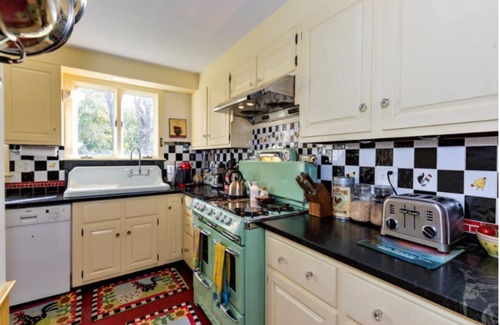 Recently installed is a brand new generator in the event the power goes out from a storm. Also pretty new is the air conditioning (split system) on the second floor with central a/c on the first floor. The spacious living room has comfortable furniture, custom built -ins, a baby grand piano to "tickle the ivories" and French doors leading into a bright four season sunroom with ample wicker furniture, a 60” flat screen TV and dining for 8. The sunroom door leads to a deck with additional dining for 3, and with stairs leading down into one of the fenced in yards for your dog. The owner will consider a small (up to 20 lbs.) non-shedding dog with a $150 pet fee.