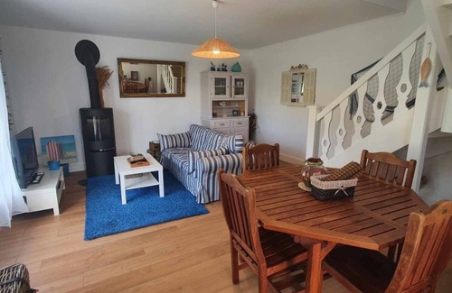We offer a beautiful house of 80 sqm, for 4 persons and a child under 3 years. Renovated, fully furnished and equipped. It is located 1.5 km from the beach, in a quiet environment. This one-story house, marine and tastefully decorated, is situated south-west. It has a private enclosed garden of 300 sqm and a private outdoor garage.
