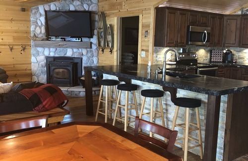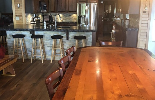 - Lakefront secluded mult-family retreat with game room and two cabins.