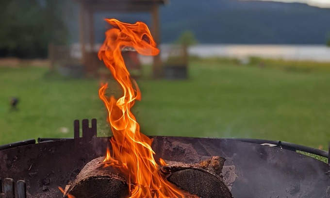 The outside of the cabin has a large porch, outdoor table and seating for the whole family to enjoy. Spend your days playing in the spacious yard which leads right down to the dock and lake. In the evening, light up the fire pit for s'mores and watch the sun set over the water.