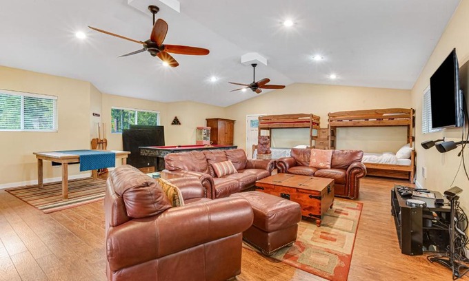 Summit Lake Guesthouse is located in Kamilche, just 16 miles from Hands on Children's Museum and 15 miles from Olympia Community Center. This beachfront property offers access to a terrace. On clear days, guests can head outside to enjoy the vacation home's outdoor fireplace or simply kick back and relax. The spacious vacation home is composed of 1 bedroom, 3 living rooms, a fully equipped kitchen, and 1 bathroom. Towels and bed linen are available in the vacation home. For added privacy, the accommodation features a private entrance. Washington Center for the Performing Arts is 15 miles from the vacation home. Seattle–Tacoma International Airport is 64 miles from the property.