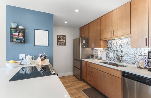 - Living Room: Queen size Murphy bed, utilize closet in hallway