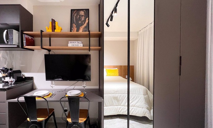 This cozy studio on Rua Carlos Petit is perfect for those seeking comfort and convenience. Featuring modern décor, fast Wi-Fi, air conditioning, and a fully equipped kitchen, it’s ideal for relaxing or working.