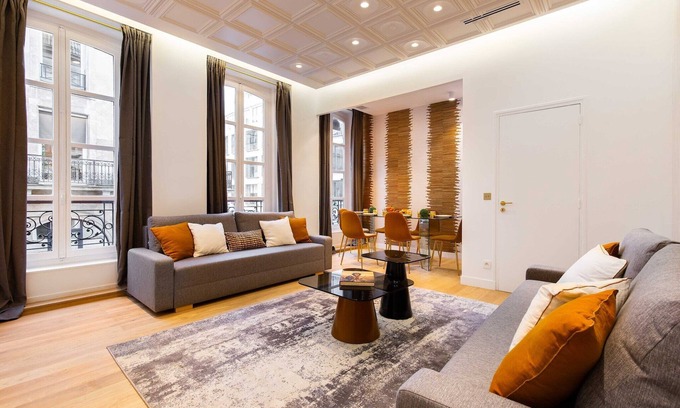 Checkmyguest offers you this sumptuous 50 m² flat, ideal for 6 people, nestled in the heart of the prestigious Bourse district, Paris 02. You will be enchanted by its modern elegance and refined comfort, while being just a few steps away from emblematic monuments such as the Palais Brongniart and the Opéra Garnier.
