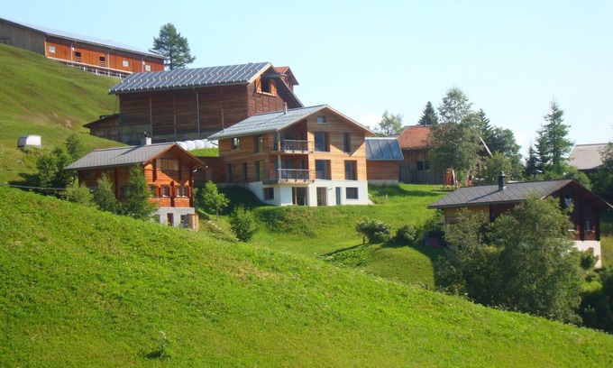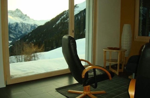 The in September 2011 completed house is on a 900m2 large plot on the outskirts of Tenna in a quiet location with beautiful views to the south. The view extends to the rear Safiental and the opposite side of the valley and on the lower horn nearby. Tenna, with its wonderful intact nature A generous selection of the most beautiful hikes and ski tours. Also a small ski lift with a cozy restaurant is available - distance to the base station 1 Km. The three-storey house has ground floor a 2 5-room apartment with 55m2. The heat in the house is obtained with solar panels and output via underfloor heating. The Minergie-P house has a comfort ventilation. The apartment is realized in harmonious materials and colors. The patio led to a long stay with view to the valley's. The apartment has a shower room / WC. The apartment has a covered Parklplatz directly next to the house. Smoking in the building is prohibited. As in a regular residential house has everything you need, such as spices, pans, candles and so on available. If required, an additional room with private shower / WC can be rented in the house.