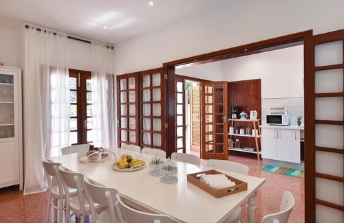 This wonderful villa has 4 bedrooms where three of them offer two single beds and the main one a double bed, as well as an in-suite bathroom.