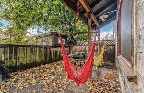 This Hawthorne-Belmont tiny house is bigger than its footprint and close to everything you need to live in Portland. Stumptown coffee. The restaurants on Division and the bars on Belmont. Biketown bike share. Mt. Tabor and Laurelhurst Park. New Season's Grocery store and a new H-mart Asian Market. Powell's books and backyard chickens. This two-story tiny house has a full kitchen with a gas range, a washer-dryer combo, a truly comfortable bed, radiant heat for socked feet, 13 windows, 3 skylights and two red dutch doors.