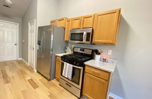 This charming house is equipped with everything you need for a comfortable stay. You will enjoy access to the entire home, where natural light floods the stylish interiors. Amenities include a well-equipped kitchen, cozy living spaces, and essential toiletries to make you feel at home. For added peace of mind, exterior security cameras ensure safety without intruding on your privacy. Additionally, you'll find space for up to 10 guests to accommodate friends and family, making it easy to host gatherings before and after the big day.