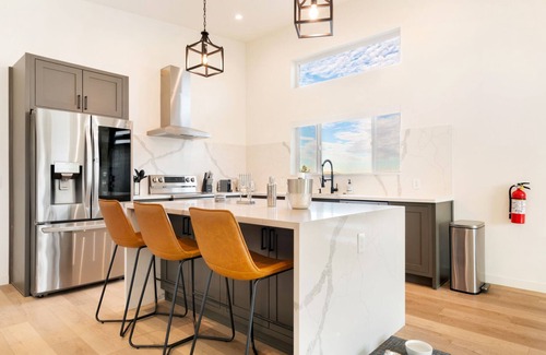Sun Oro is a brand new build and masterfully designed home surrounded by lush desert landscape. This brand new home is filled with a stunning interior design for relaxing in luxury. Our guests can enjoy dinner with friends at the outdoor dining table, lounge by the outdoor fire pit or end your night relaxing in the hot tub under the stars. We hope guests wake up relaxed, rejuvenated and this truly unique experience.