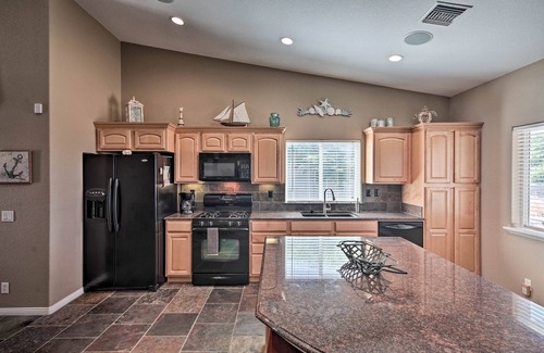 Discover a desert oasis on the Colorado River with this Mohave Valley home! The vacation rental boasts 3 bedrooms and 3.5 bathrooms just a short walk from Mohave Indian Tribe’s beautiful riverfront beaches and within minutes of hundreds of off-road trails. Spend days lounging in the sand or cruise along the coast to Avi Casino, Needles Marina, and Jack Smith Park, all located closeby. Afterward, unwind in the air-conditioned space or on the back patio, equipped with a grill and shaded area!