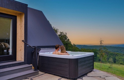 Discover the magic of the West Virginia Mountains at our brand-new modern A-Frame retreat! Soak in your private hot tub, get cozy at the fire pit, and take in sweeping views of rolling farmland and majestic peaks—all from your own slice of paradise. This stunning new A-frame features:
