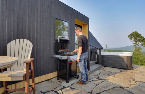Reconnect, relax, and recharge at our brand-new, modern cabin tucked into the heart of West Virginia's breathtaking landscape. Designed exclusively for couples, this private retreat combines sleek comfort with rugged beauty. Floor-to-ceiling windows frame panoramic mountain views, flooding the space with warm, natural light.