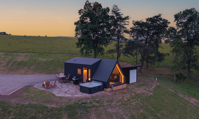 Start your day with coffee on the deck as the sun rises over the hills. Spend the afternoon exploring acres of unspoiled land, enjoying a peaceful moment by the private pond, or picnicking at the scenic hilltop pavilion. When evening falls, fire up the charcoal grill, soak in the luxurious hot tub, and gather by the crackling fire pit under a sky full of stars.
