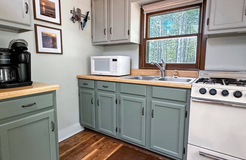 Welcome to Sunbeam Cottage, a charming 2-bedroom house on Lake Independence, less than two miles from shops and restaurants in Big Bay. Original hardwood flooring, multi-paned windows, antique hardware, and vintage shutter blinds bring out the 1920s character of the cottage, while the sparkling lake views, welcoming sunroom, outdoor seating, and spacious deck create a picturesque and comfortable surrounding to relax and enjoy time away on your vacation. The property's 300 feet of lake frontage and private dock make the space is ideal for those looking for a peaceful getaway. While the U.P. boasts many lakes, Lake Independence's unique features include its stone-and-sand bottom, warm temperature, and shallow depth. No freezing limbs, no water shoes required, and no drop off after 20 feet! In summer, walk down the stairs at the end of the dock into the water and play in the lake all day, venture out onto the lake in the rowboat or kayak available for guest use, or relax in the hammock as the breeze blows. Open the windows in the sunroom to enjoy the feel of being outside, but without the bugs! And if fishing is on your to-do list, Lake Independence is an ideal place to catch jumbo perch, walleye, bass, and more. When hunger calls, the easy-to-use pellet grill is perfect for cooking for the whole family, or visit Big Bay's historic Thunder Bay Inn and then stop for ice cream afterward. While you're in town, enquire at Huron Mountain Outfitters about kayaks, canoes, paddle boards, and motor boats available for rent!