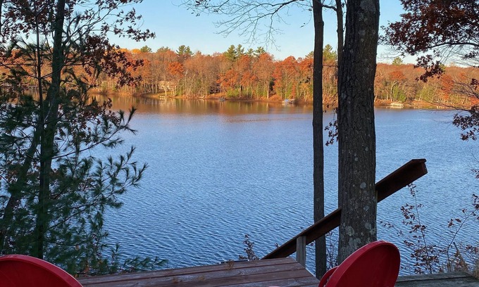 - Amazing fall colors, modern lakefront home with fire pit, dock, optional pontoon