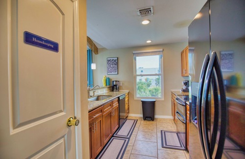 Step into the open concept living space, where panoramic views of the serene Gulf of Mexico greet you from every angle. No need to haul luggage upstairs – the elevator ensures effortless access to your beach haven. Lounge in the living room, boasting vaulted ceilings, oversized windows and walkout access to your deck overlooking the turquoise waters and coastline.