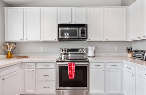 Well-Equipped Kitchen: Host intimate meals or rehearsal dinners in the fully equipped kitchen that includes modern appliances, making it easy to cater to your celebration needs without stepping out of your oasis.