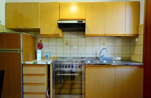 On the 1st floor: (open kitchen(cooker(4 ring stoves), oven, fridge-freezer), Living/diningroom(TV, dining table, seating area), bedroom(double bed), bathroom(shower, washbasin, toilet, bidet, garden furniture), heating(central), terrace(private))