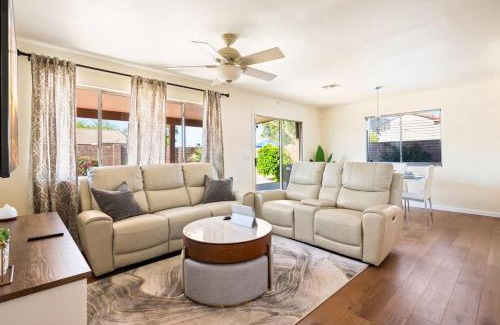 Offering a garden, Sunlit Sandscape Villa Private Sauna Heated Pool Hot Tub Hosted By Relaxtay features accommodations in Casa Grande. Guests may go for a swim in the private pool. The accommodation offers a sauna, free Wifi throughout the property, and luggage storage space. The villa features 4 bedrooms, a fully equipped kitchen with a dishwasher and an oven, a washing machine, and 2 bathrooms with a hair dryer. A TV is featured. For added privacy, the accommodation features a private entrance. Phoenix-Mesa Gateway Airport is 46 miles away.