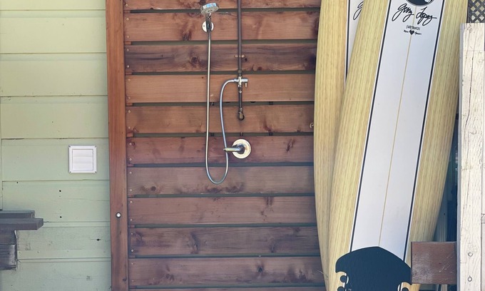 Lots of outdoor space in the front yard, back yard and patio areas. Plenty of space for any gear you might bring. There is a surfboard rack and an outdoor shower. (Owners may access this outdoor area as we come and go from the beach and little/Jr. Guards in the summer!)