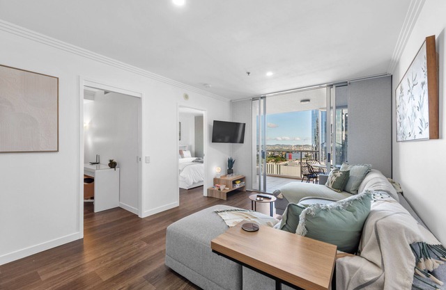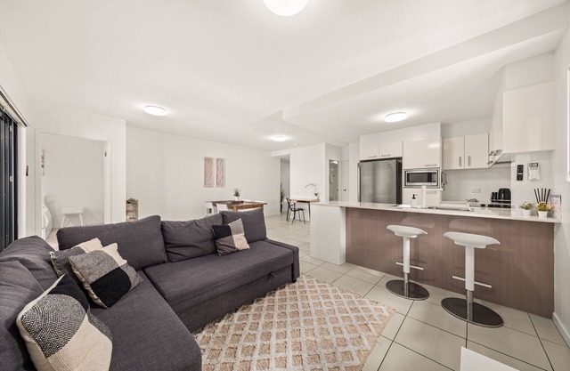 Nestled in the vibrant heart of South Brisbane, this modern top-floor apartment is just a stone`s throw from Fish Lane & the Cultural Precinct. Offering a tranquil haven, it caters to the needs of both business and leisure travellers with its WiFi, kitchen & in-unit laundry facilities, on-site parking and comfortable bed. Kickstart your day with coffee at Ripe Café downstairs, before exploring the South Bank Parklands, savouring lunch at River Quay & catching a captivating show at QPAC.